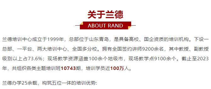 鲁ICP备05051098号 版权所有:青岛兰德经济管理培训学校 咨询电话:400-816-5526(免长途话费)鲁公网安备 37020202000848号