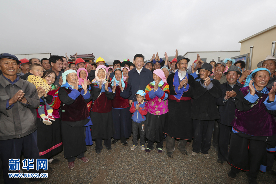 2016年8月22日下午,习近平总书记来到格尔木市唐古拉山镇长江源村考察生态移民、民族团结和基层党建工作。