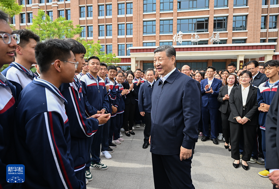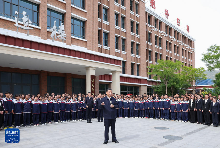 6月18日至19日,中共中央总书记、国家主席、中央军委主席习近平在青海考察。这是18日下午,习近平在果洛西宁民族中学考察时,同师生们亲切交流。