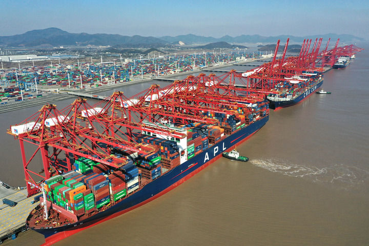 东海之滨,巨轮往来、集卡穿梭……繁忙的场景每天都在浙江宁波舟山港上演,彰显中国经济持续涌动的发展活力与强大动力。