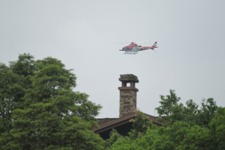 这是2024年6月20日在成都都江堰市青城山起降点拍摄的参与验证飞行的载人直升机。