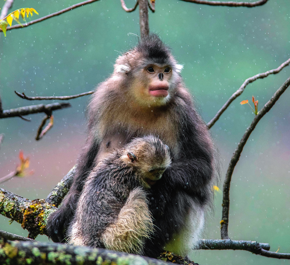 云南迪庆藏族自治州香格里拉滇金丝猴国家公园里的滇金丝猴