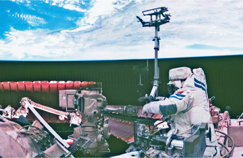图为2024年7月3日在北京航天飞行控制中心拍摄的神舟十八号航天员李聪在空间站组合体舱外作业的画面。