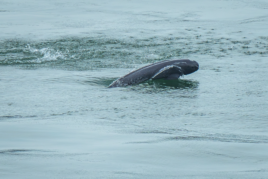 长江江豚在湖北省宜昌市葛洲坝下游水域逐浪嬉戏