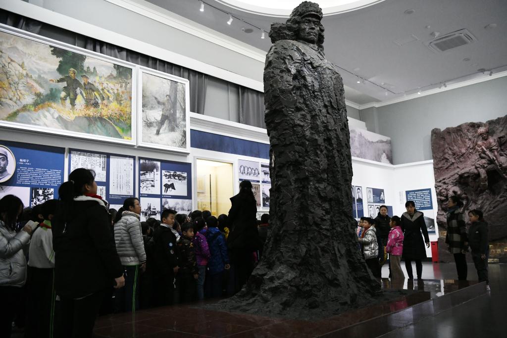 在东北烈士纪念馆,学生们在展厅参观(资料照片)。