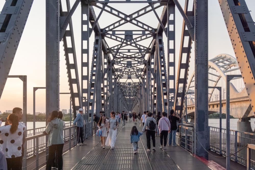 横跨松花江,昔日宏伟的中东铁路桥变身网红观赏点,与之平行的则是一座现代化双线电气化铁路桥。中欧班列在这里呼啸而过,把中国的优质商品运往万里之外的欧洲。