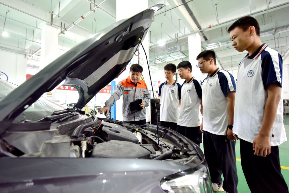 2024年6月7日,河北省邢台市威县职业技术教育中心教师在指导学生学习汽车维修技术。