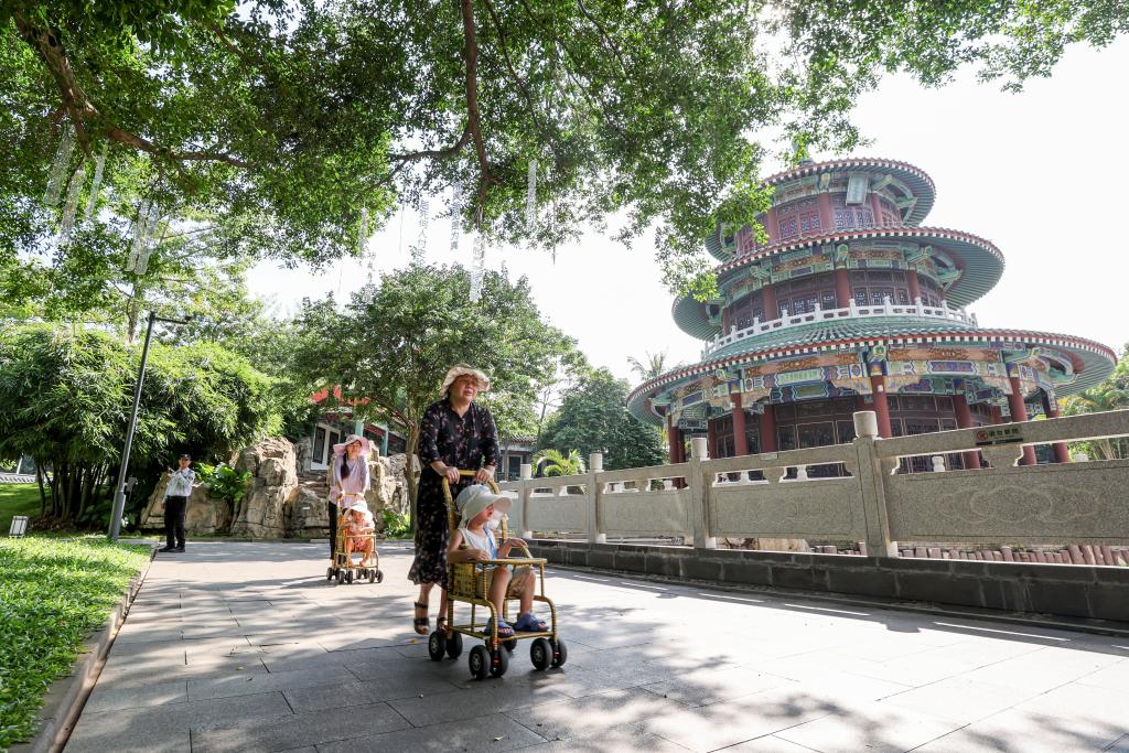 8月13日,市民在位于海口市的海瑞文化公园里散步。