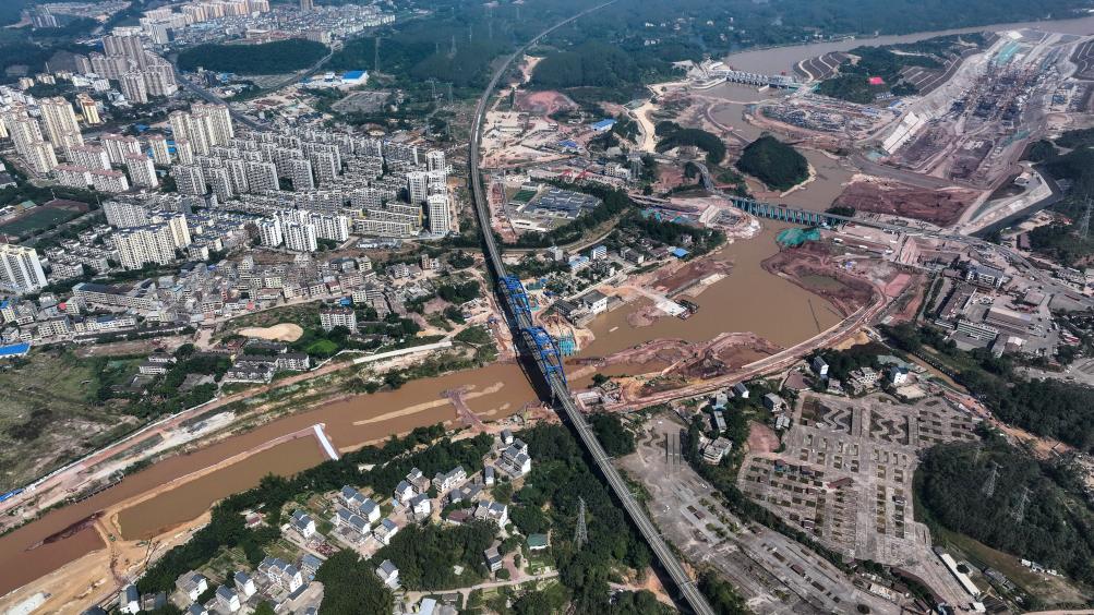 广西平陆运河青年枢纽与市区衔接处的建设工地。