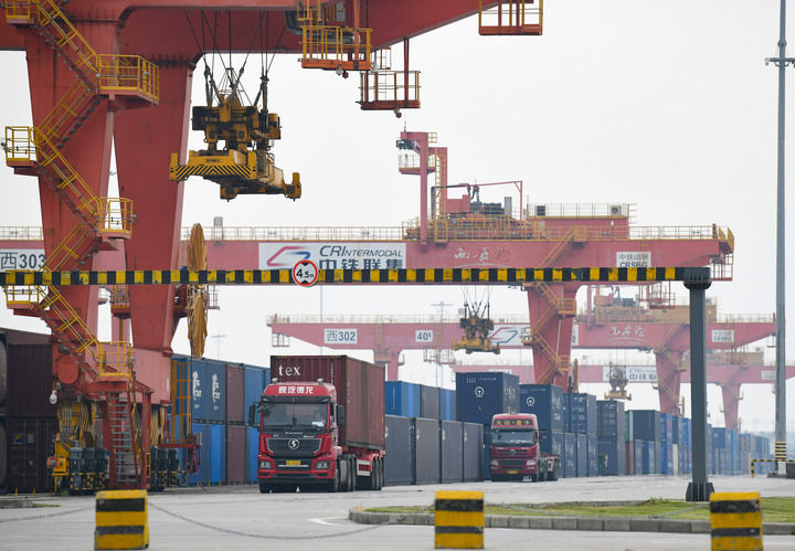 中哈双方合作建设的哈萨克斯坦西安码头,位于西安国际港站。