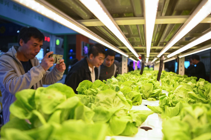 陕西省杨凌市举行的第31届中国杨凌农业高新科技成果博览会上,观众在了解智慧植物工厂。