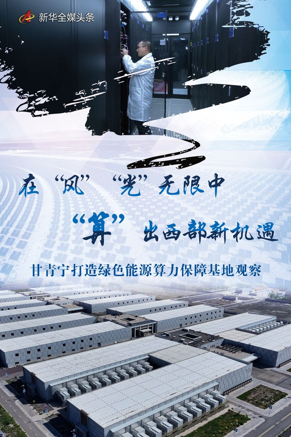 机房蜂鸣声此起彼伏,连排机柜灯光闪动,实时数据联通东西……在富集的新能源强劲支撑下,一块块数据链高速运算的赛博“拼图”,正在西北内陆渐次“点亮”。