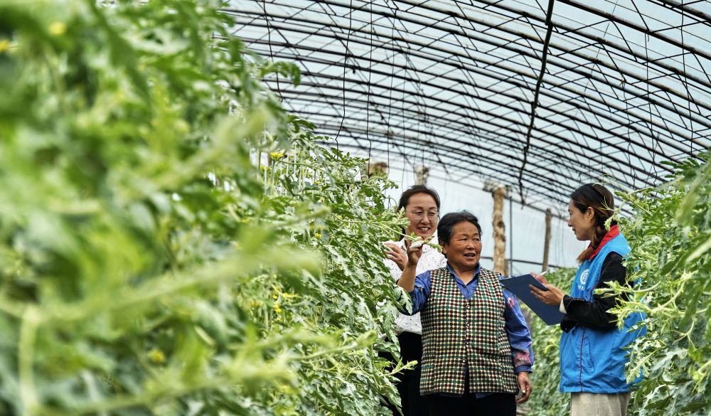 北京市大兴区庞各庄镇李家巷村政务服务站的工作人员来到大棚内为瓜农办理社保业务。