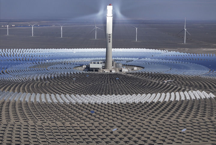 新疆哈密市伊吾县淖毛湖镇拍摄的国家光热示范项目——熔盐塔式50兆瓦光热发电站。