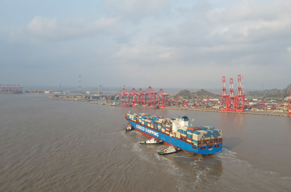 “新上海”轮抵达洋山港,这是自秘鲁钱凯港开港后首个“钱凯—上海”正式航次。