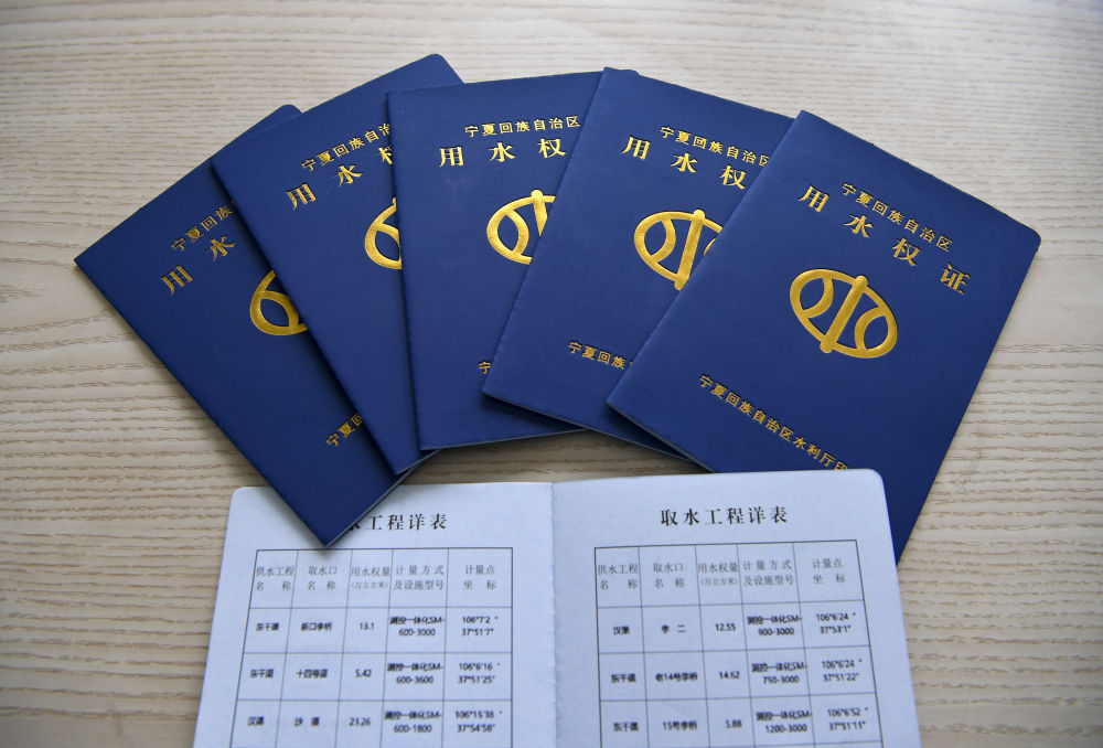 宁夏吴忠市利通区高闸镇部分村庄的用水权证。