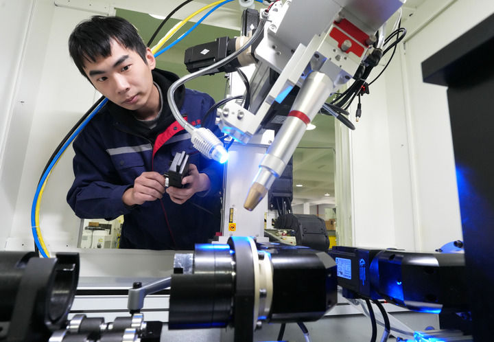 浙江省绍兴市上虞区浙江创新激光设备有限公司技术人员在调试四轴联动工作台激光焊接机。近年来,绍兴市上虞区积极发展新质生产力,专精特新企业培育成效显著,有效助力经济发展。