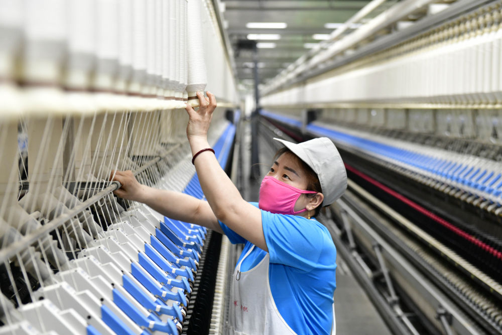 在山东魏桥纺织科技研发中心有限公司,工作人员在智能织机前忙碌。