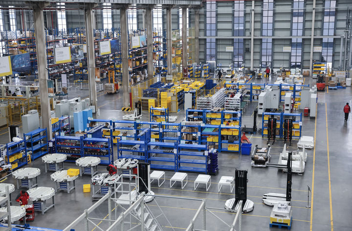 浙江凯乐士科技集团股份有限公司生产车间,工人在装配设备。