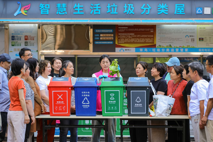 在青岛市崂山区国际名都小区一处生活垃圾分类投放点,居民黄建华说:“我们家每天平均会用两三个垃圾袋,分别装不同的垃圾。大家从‘不愿分不会分’变为‘主动分积极分’,小区的环境越来越好。”