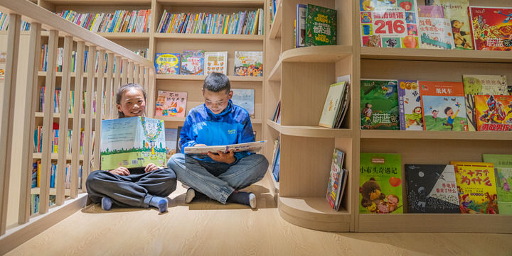 孩子们在位于西藏那曲市色尼区南部新城的“温暖嘉·色尼城市书房”看书。