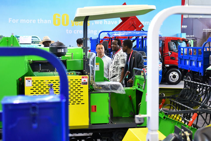观众在长沙国际会展中心参观农机设备。6月12日至15日,第四届中国—非洲经贸博览会在湖南长沙举行。