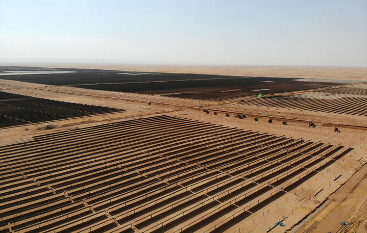 在埃及南部阿斯旺省拍摄的由中国能源建设股份有限公司承建的康翁波光伏电站。