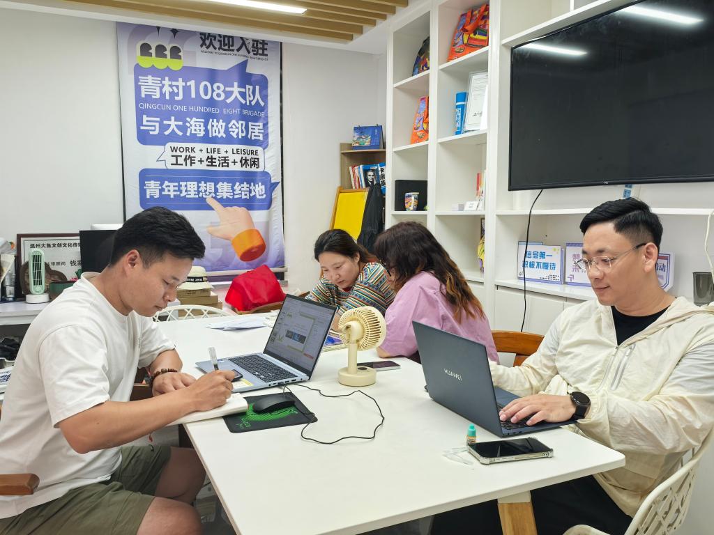 在浙江省温州市洞头区东屏街道东岙村,一群创业青年在“青村108大队”海创空间内工作。