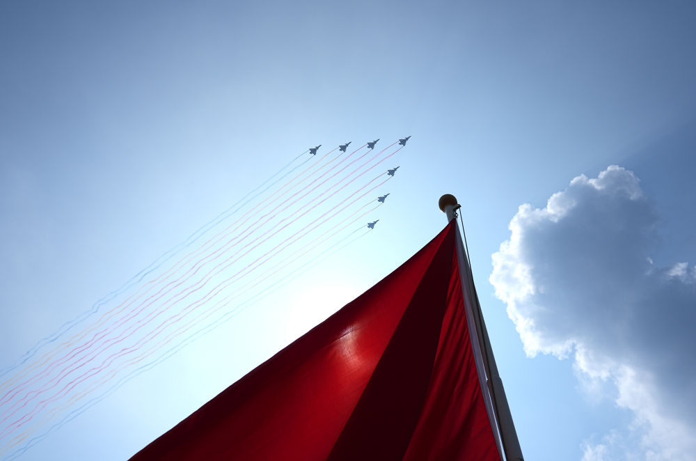 纪念中国人民抗日战争暨世界反法西斯战争胜利80周年大会在北京隆重举行。这是教练机梯队接受检阅。