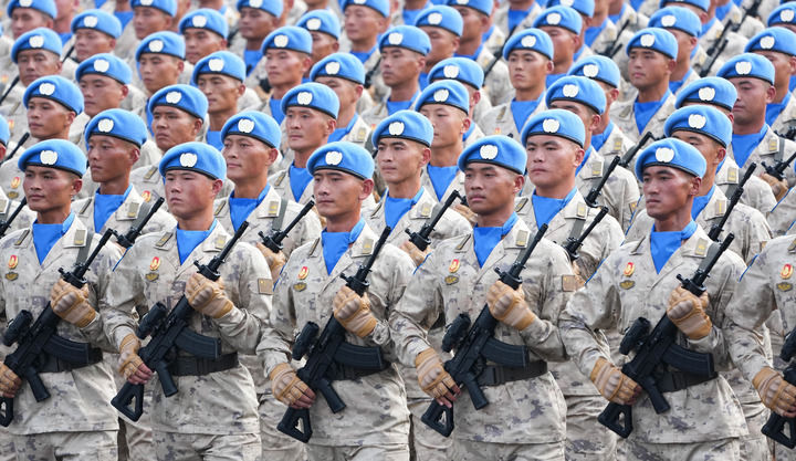 纪念中国人民抗日战争暨世界反法西斯战争胜利80周年大会在北京隆重举行。这是维和部队方队接受检阅。