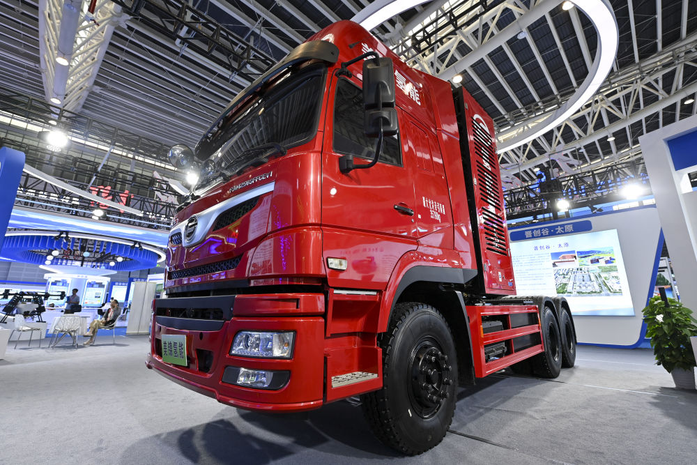 在2024中国(太原)国际能源产业博览会上拍摄的美锦氢能重卡。