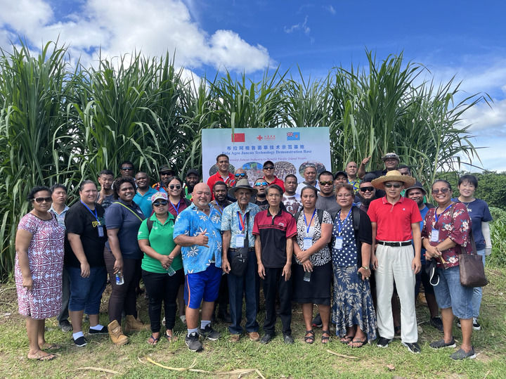 来自巴布亚新几内亚、汤加、库克群岛、萨摩亚、瑙鲁等国家的“太平洋岛国菌草技术培训班”学员在斐济布拉阿格鲁菌草技术示范基地合影。