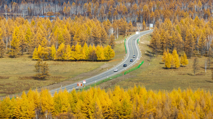 游客在内蒙古阿尔山国家森林公园驾车游玩。