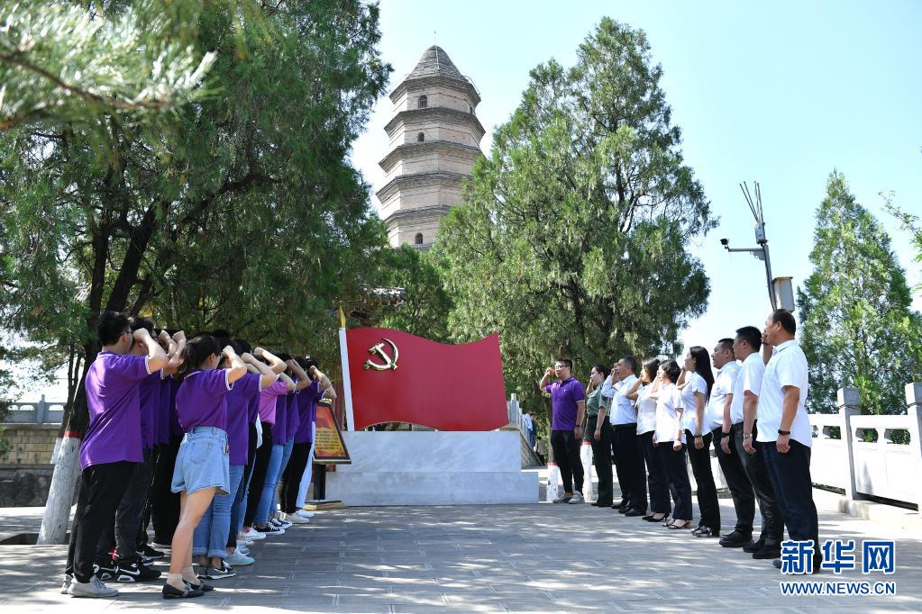 党员干部在延安市宝塔山重温入党誓词(2020年6月29日摄)。