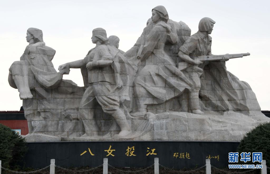 位于黑龙江省牡丹江市江滨公园的“八女投江”群雕(2018年10月26日摄)。