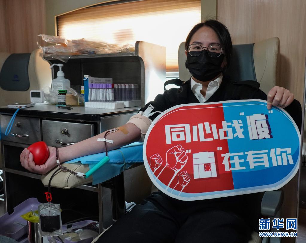 2020年3月5日,杭州海关青年关员在献血车上献血。