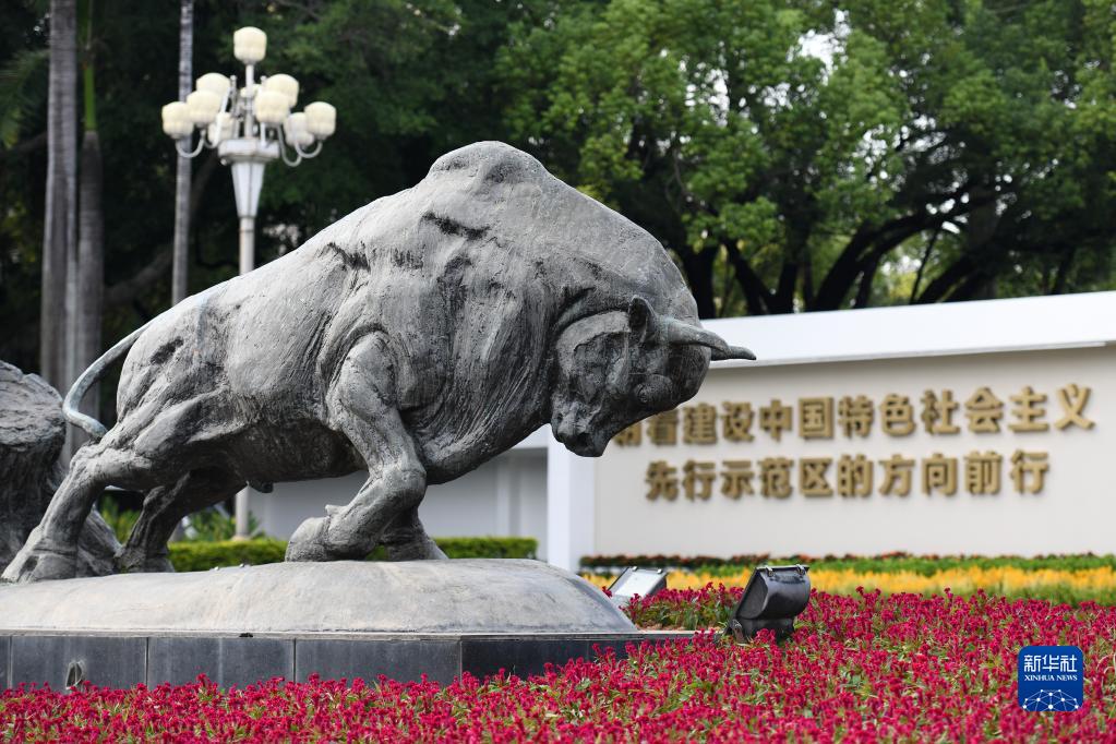 这是深圳深南大道的“拓荒牛”雕像(2020年10月12日摄)。