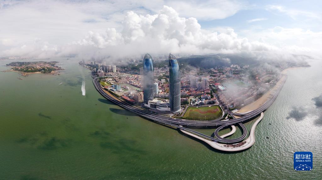 这是厦门演武大桥沿线及鼓浪屿(拼接照片,2017年8月24日摄)。