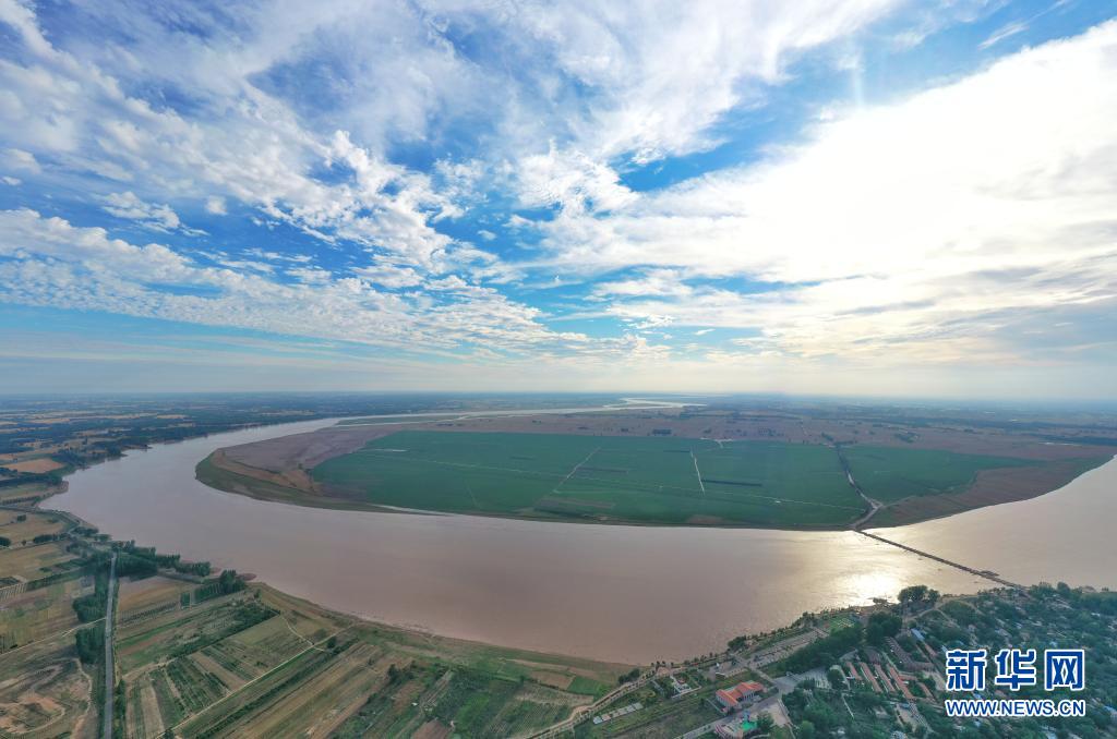 这是6月18日在河南省兰考县黄河湾风景区拍摄的黄河(无人机照片)。