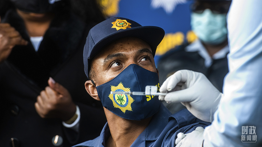 △2021年7月5日,南非索维托,当地警察接种新冠疫苗。