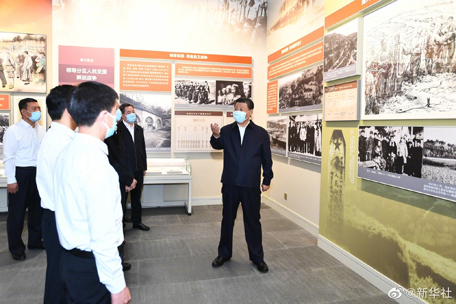 习近平总书记14日在榆林市绥德县考察调研。他先后来到中共绥德地委旧址、绥德实验中学、绥德县非物质文化遗产陈列馆、张家砭镇郝家桥村,围绕弘扬党的光荣传统和优良作风、促进学生全面发展与健康成长、推进传统文化保护与传承、全面推进乡村振兴等实地调研。