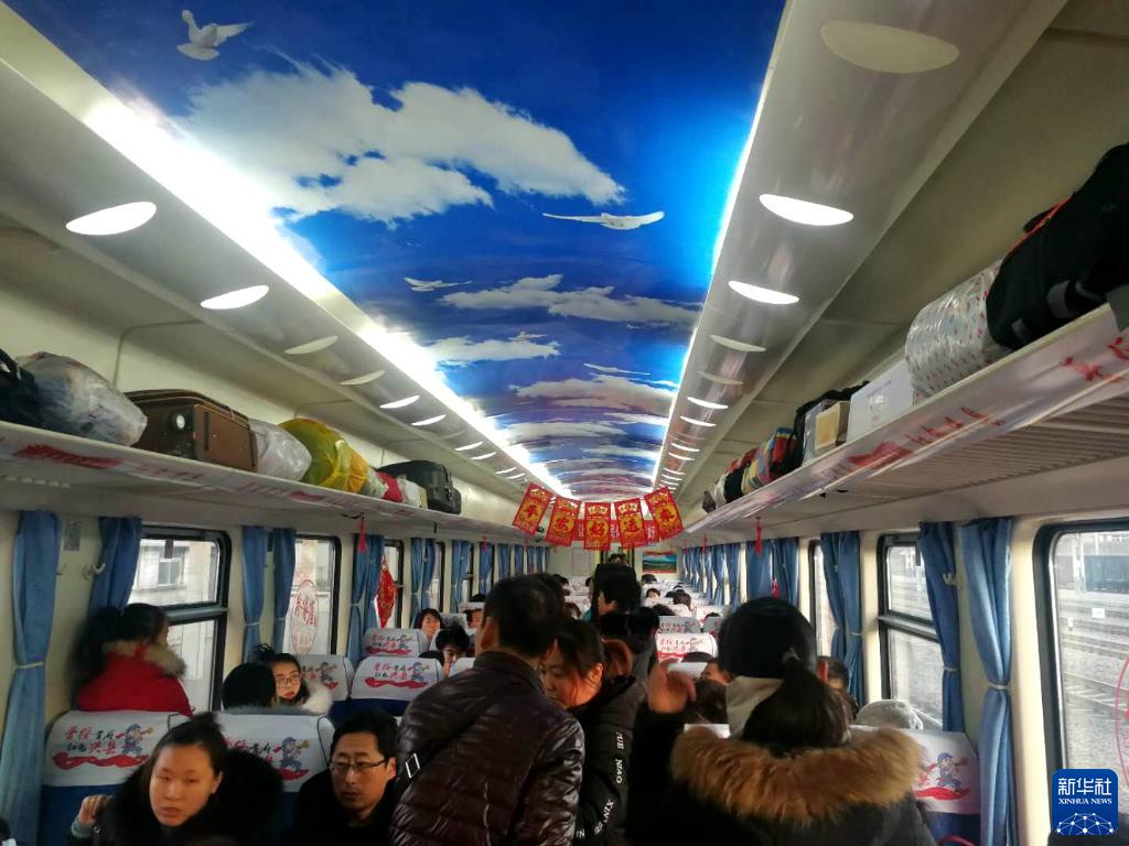 这是2019年1月21日拍摄的“蔡家崖”号列车车厢内景。