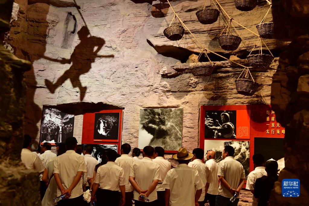 游客在河南林州红旗渠纪念馆参观(2019年5月23日摄)。