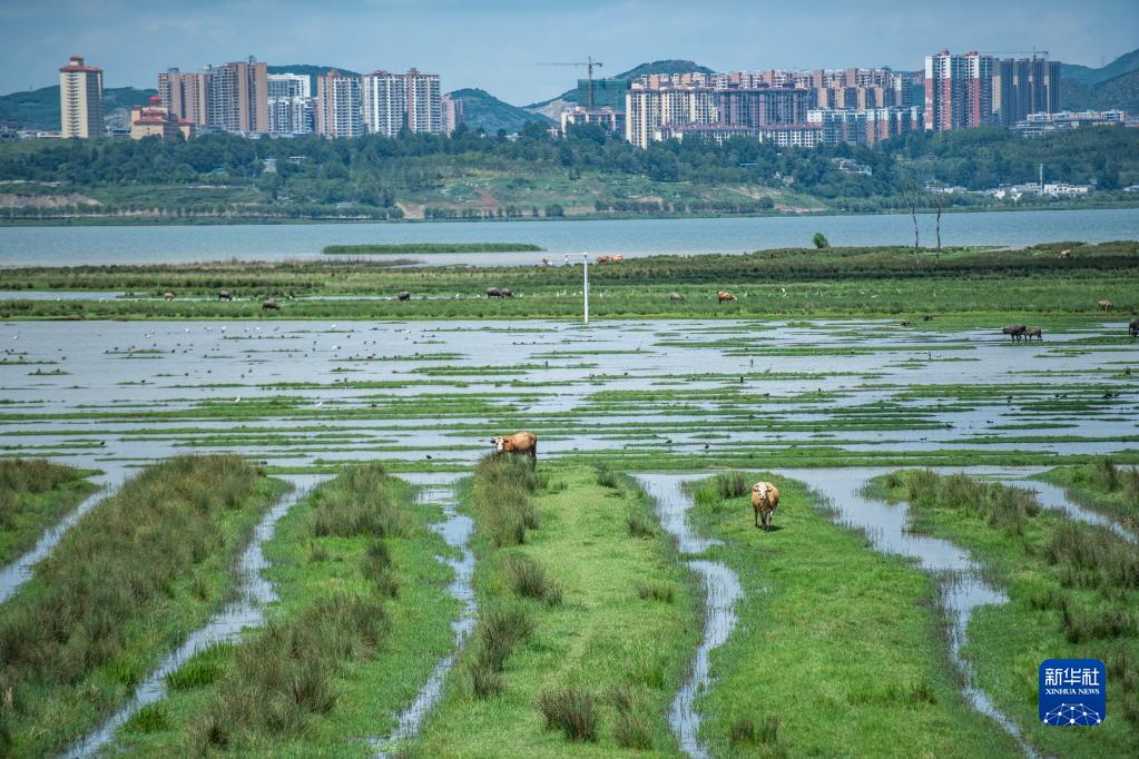 贵州省威宁县村民在草海镇放养的牛(7月7日摄)。