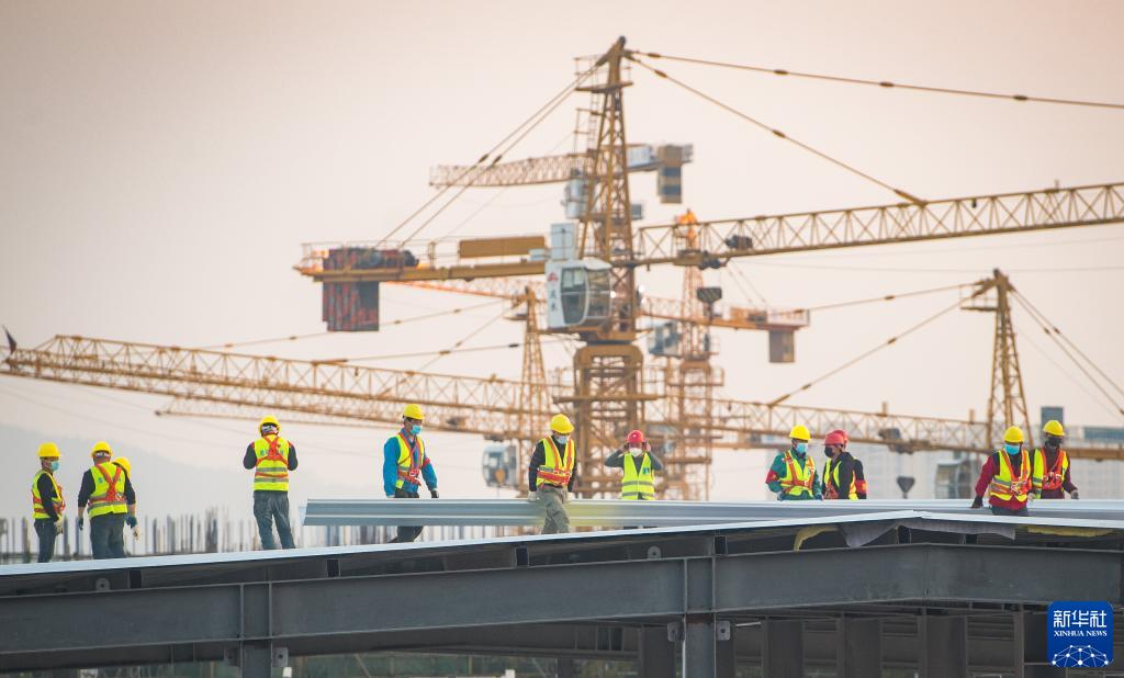 中建三局的建设工人在武汉雷神山医院建设工地施工(2020年2月4日摄)。