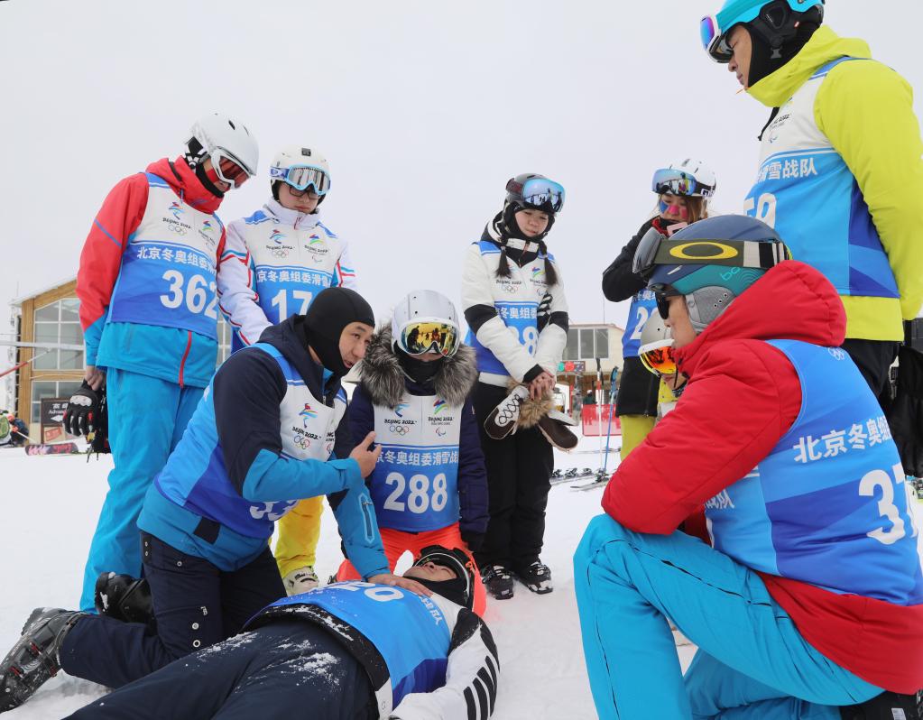 北京冬奥组委滑雪战队队员正在学习应急医疗处置知识。