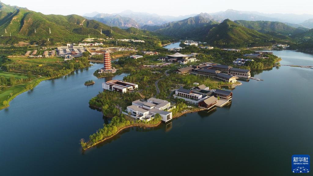 “一带一路”国际合作高峰论坛于2017年5月14日至15日在北京举行,怀柔雁栖湖国际会议中心是此次高峰论坛的主会场。这是雁栖湖(2017年5月6日摄,无人机照片)。