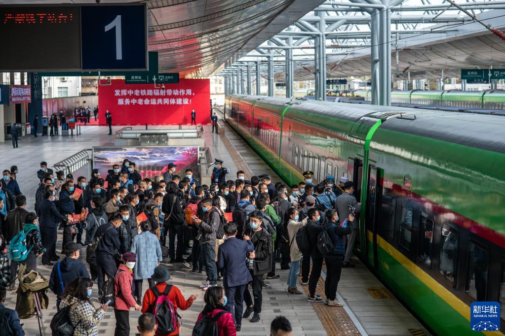 12月3日,乘客在中国昆明站准备搭乘中老铁路首发列车。