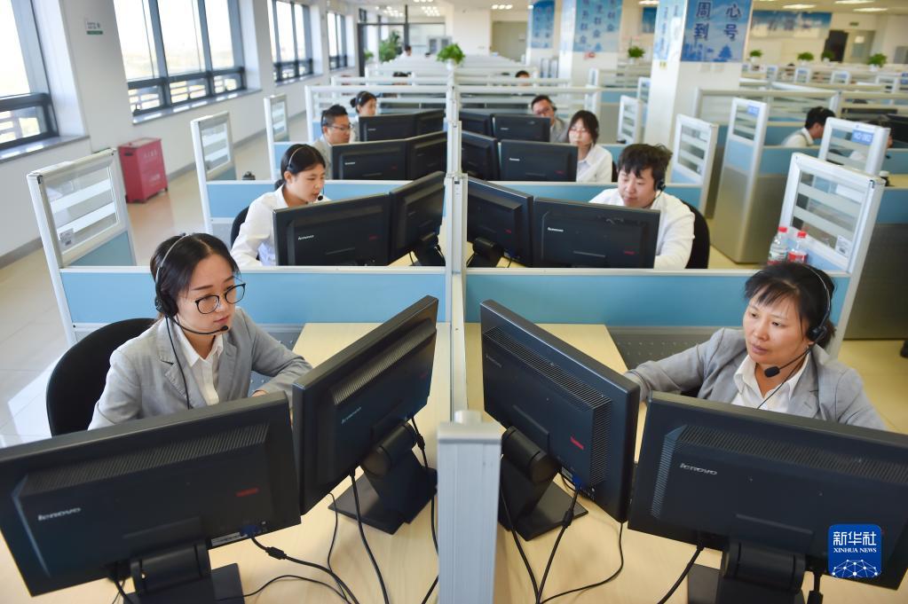 在位于北京亦庄的12345市民热线话务大厅,工作人员接听热线电话(2019年11月13日摄)。