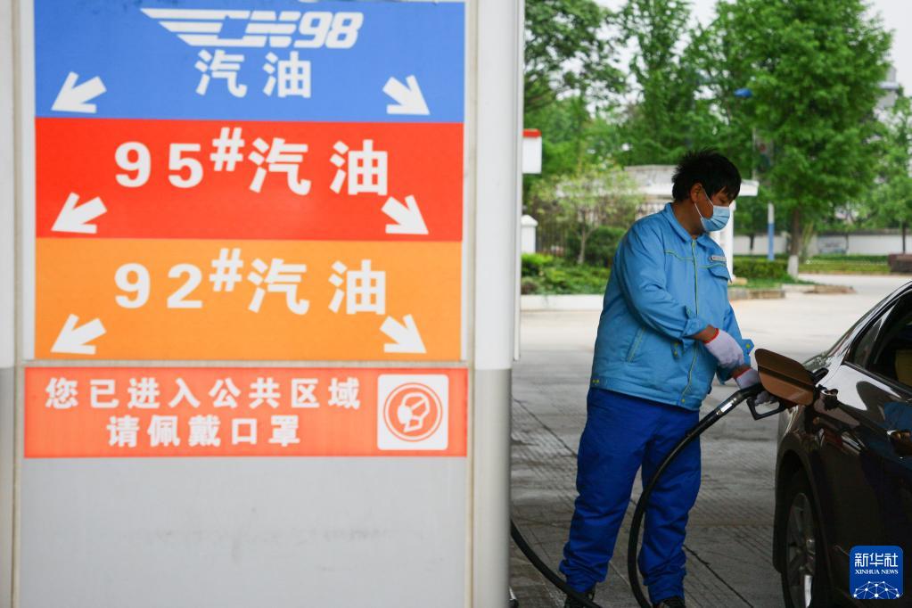 4月15日,在云南省曲靖市,一加油站工作人员给汽车加油。